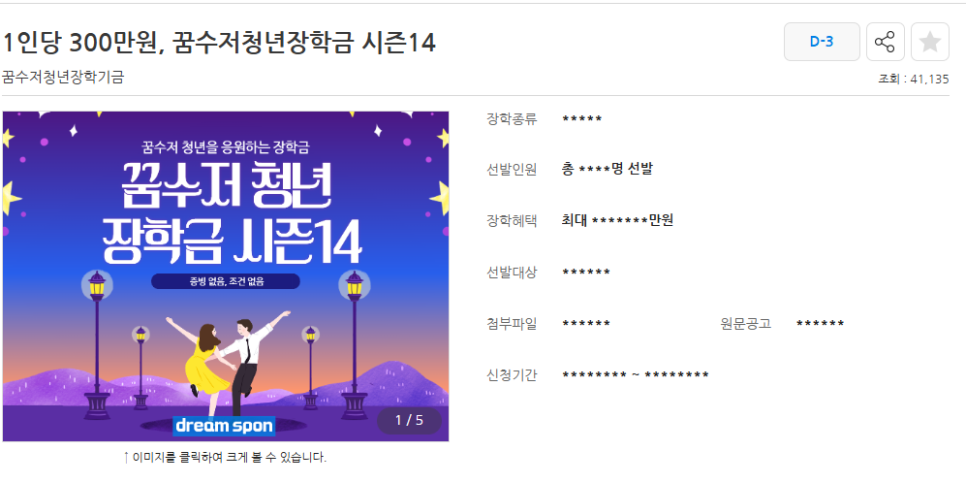 - 꿈수저청년장학금 배너 클릭, 온라인 신청서 작성(자기소개서 필수)