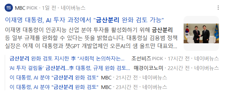 다만 정부 내에서도 이견이 있습니다. 금융위원회는 상대적으로 완화에 적극적인 반면, 공정거래위원회는 신중한 입장을 보이고 있으며, 부처 간 조율이 쉽지 않은 상황입니다.