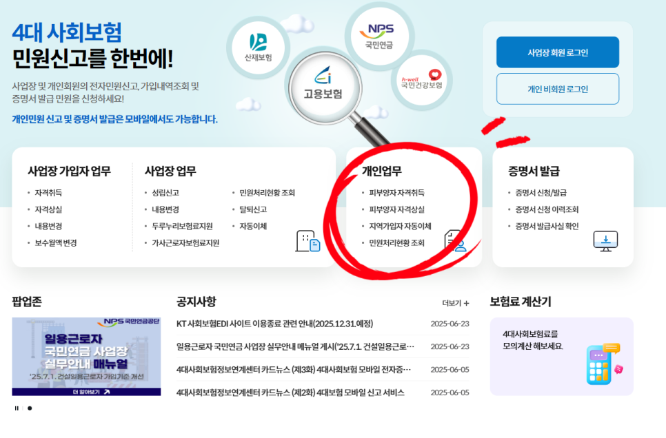 - 4대사회보험 정보연계센터 등 통합 사이트