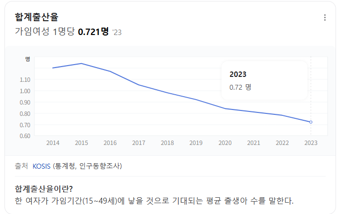 출산율이 회복될 기미가 보이지 않는 시대입니다.