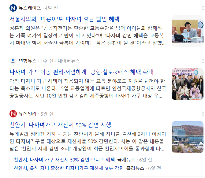 - 자동차 취득세 감면: 2자녀 50% 감면(70만 원 한도), 3자녀 이상 전액면제