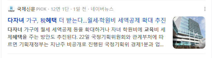 - 소득세 세액공제: 2자녀 55만 원, 3자녀부터 한 명당 40만 원씩 추가 공제(세법 변동 주의)