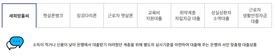 새희망홀씨 대출은 서민금융진흥원이 지원하고 국민·신한·우리·농협 등 1금융권 주요 은행이 협력하는 서민맞춤형 금융상품입니다.
