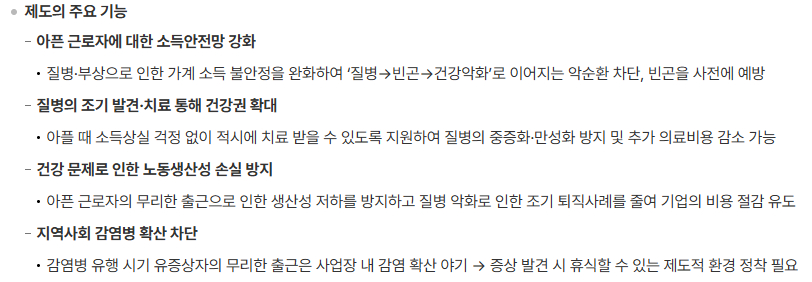이 제도는 단순한 복지 지원을 넘어 감염병 확산 방지, 빈곤 예방, 근로자의 건강권 보장 등 사회 전반에 긍정적이고 폭넓은 영향을 끼칩니다. “아픈 데도 출근하다”는 문화에서 벗어나 모두가 치료에 집중할 수 있는 환경 조성이 목표입니다.