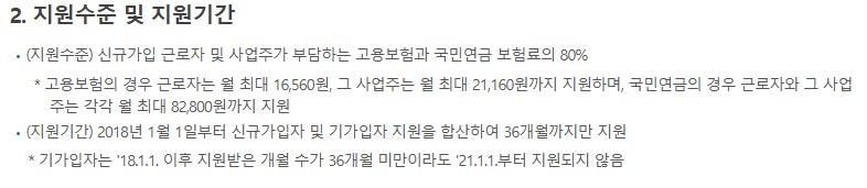- 국민연금: 근로자 및 사업주 각 월 최대 약 97,160원 지원