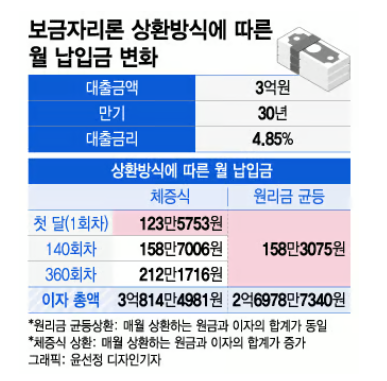 - 초반 몇 년간 이자만 또는 적은 원금 상환으로 월 상환액이 적으며, 이후 원금 중심으로 상환금액이 증가합니다.