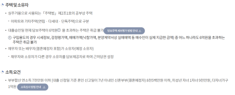 - 주택 소유 상태: 무주택자 또는 3년 이내 기존 주택 처분 조건인 일시적 1주택자