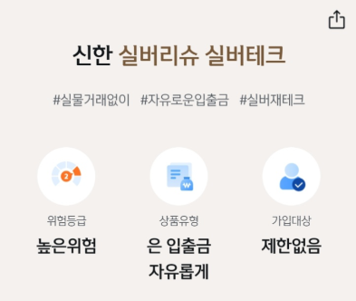 - 신한은행 등에서 실버리슈, 실버테크 등의 은 적립식 통장 제공